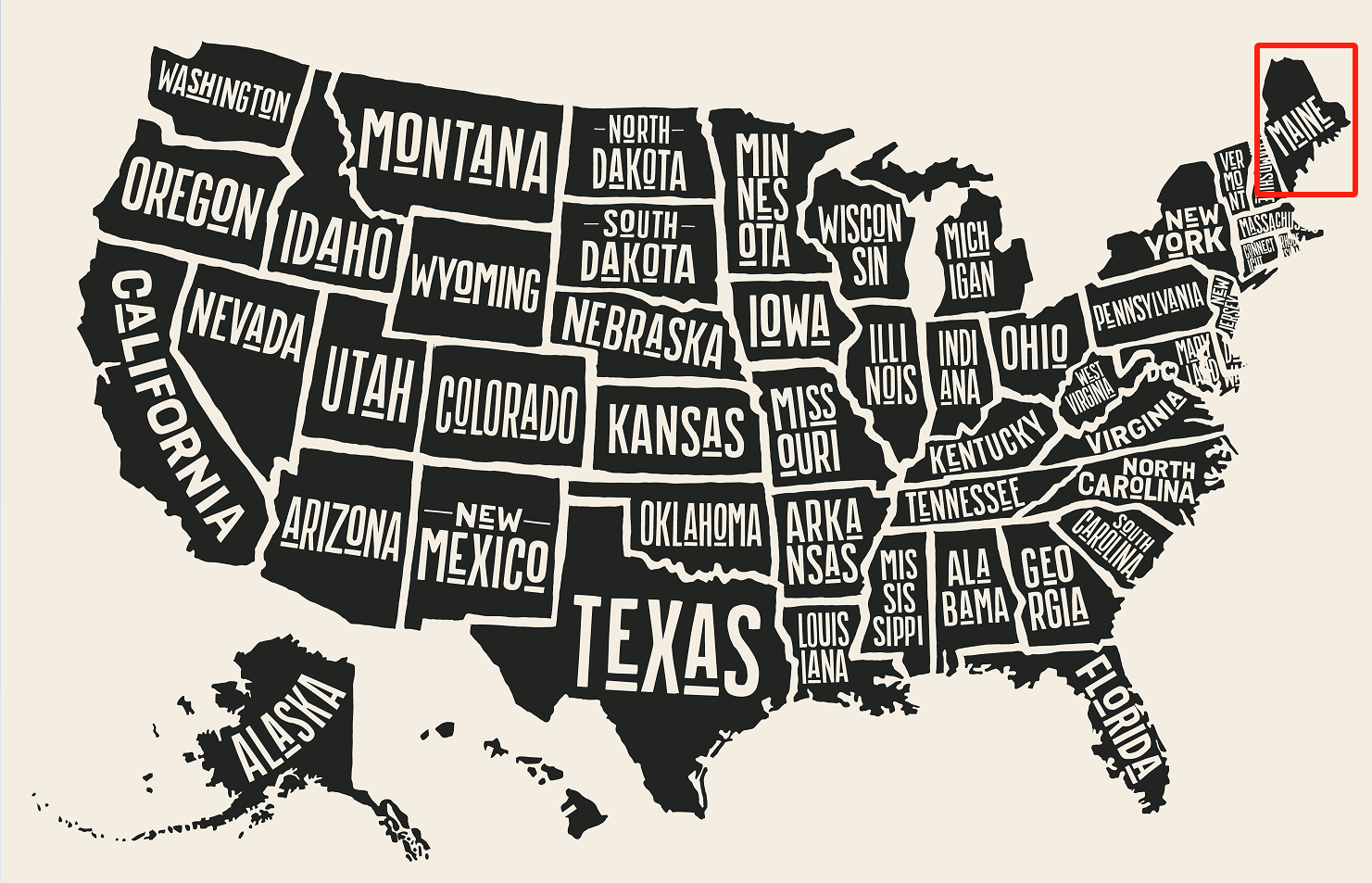 缅因州北邻加拿大魁北克省,人口密度低,境内90%的面积由森林覆盖,因此也被称为“松树之州”(Pine Tree State)。因其独有的地理位置,目前增长最迅速行业为绿色科技和可持续能源、高科技及研发。