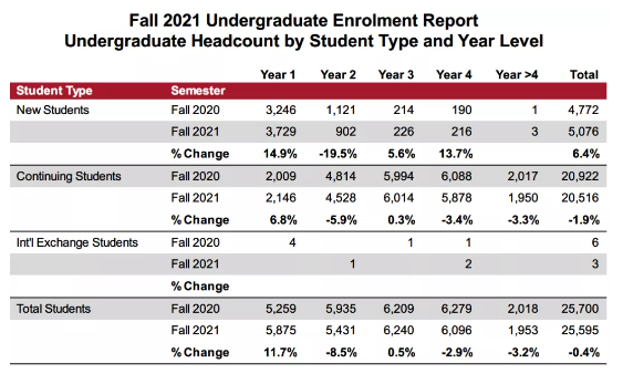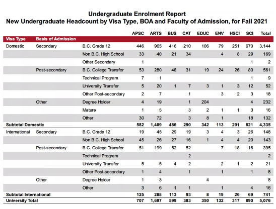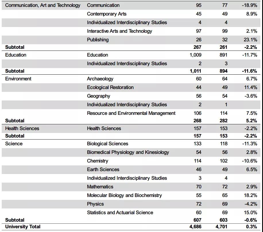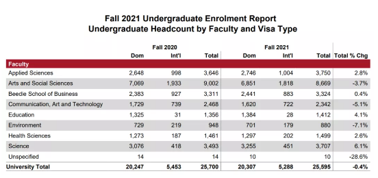 FU(西蒙菲莎大学)在近日发布了2021 Fall (下称:21秋)入学的数据,相比多大要在入学的第二学期才公布,这些数据更具申请指导意义。小编今天带大家来看一下,进入疫情的尾声,入学数据相比去年是否有很大的变化。