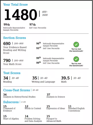 X同学的ACT基本走上正轨,这时SAT也出分了,1510分(阅读350,文法360,数学800),突破了1500,令人欣喜的是语法知识点是满分15分,数学满分,这两部分目标达成,发挥稳定,可是单词的小分降到了10分,整体文章表达的分数从满分降了1分,这两部分的波动让X同学的成绩有些尴尬。