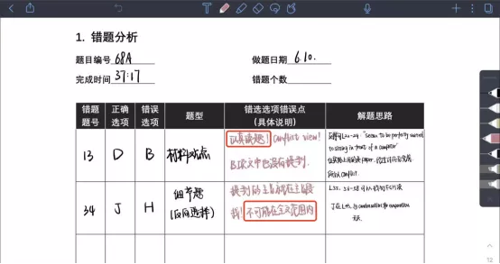 阅读在26~30分区间波动的同学,要大大提高刷题量,坚持模拟真实考试环境的机考,并且动笔完善错题分析,不光要分析错题原因,也要标注正确的应对思路,每一道错题都是积累经验的好机会,正视因为“马虎、没仔细看或手滑”等问题。
