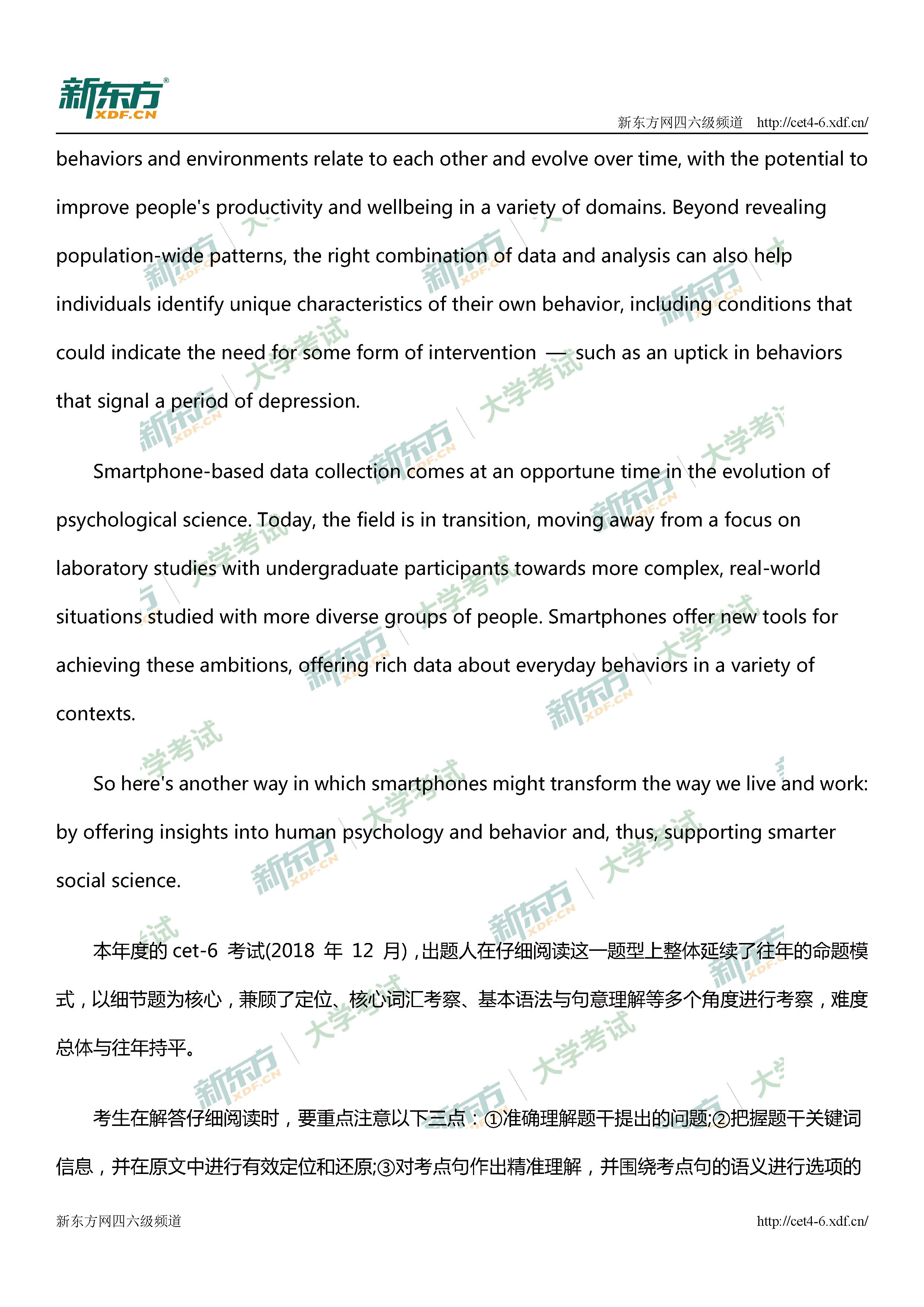 以下内容是2018年12月六级仔细阅读passage2答案解析,供各位考生参考!新东方网四六级频道第一时间更新公布英语四六级真题答案。同时广大考生还可随时@新东方网四六级微博及新东方网四六级微信xdfcet46,与线上老师以及考生随时互动答疑,敬请广大考生密切关注2018年12月英语四六级真题解析专题。
