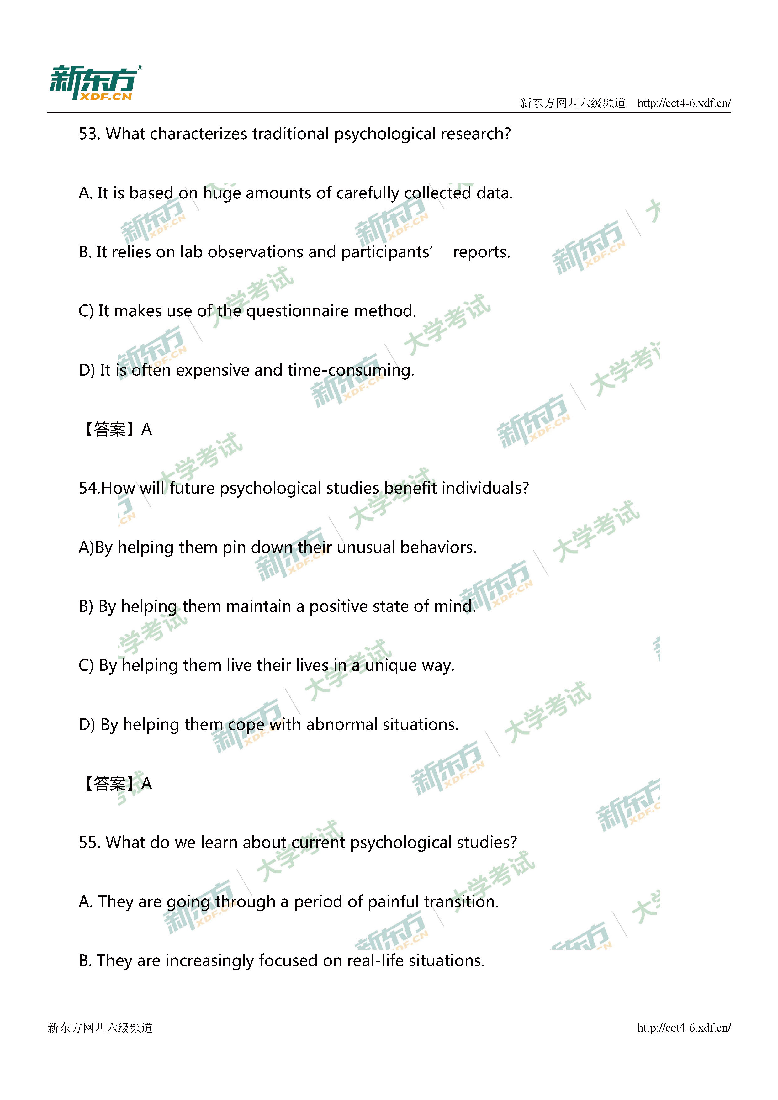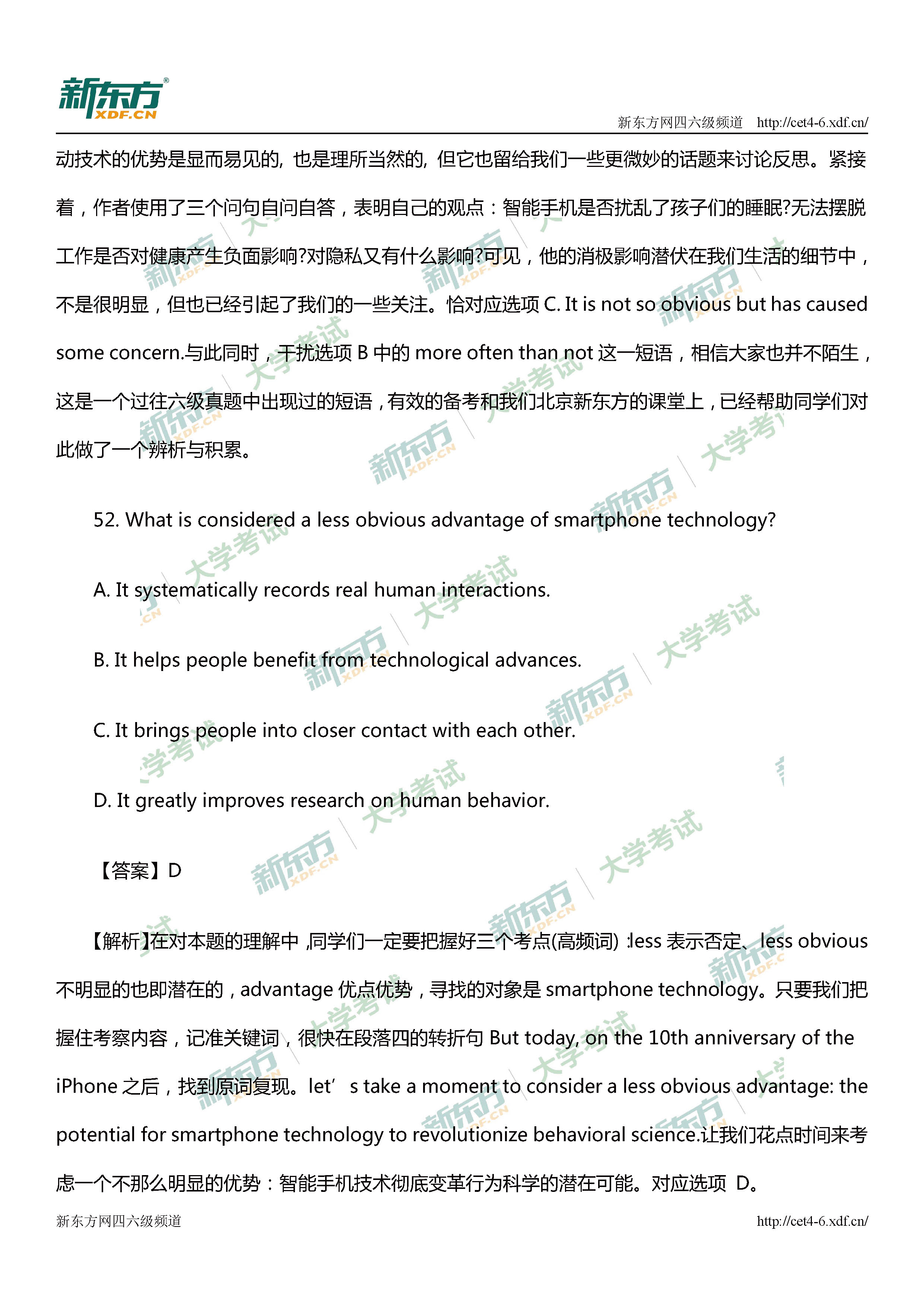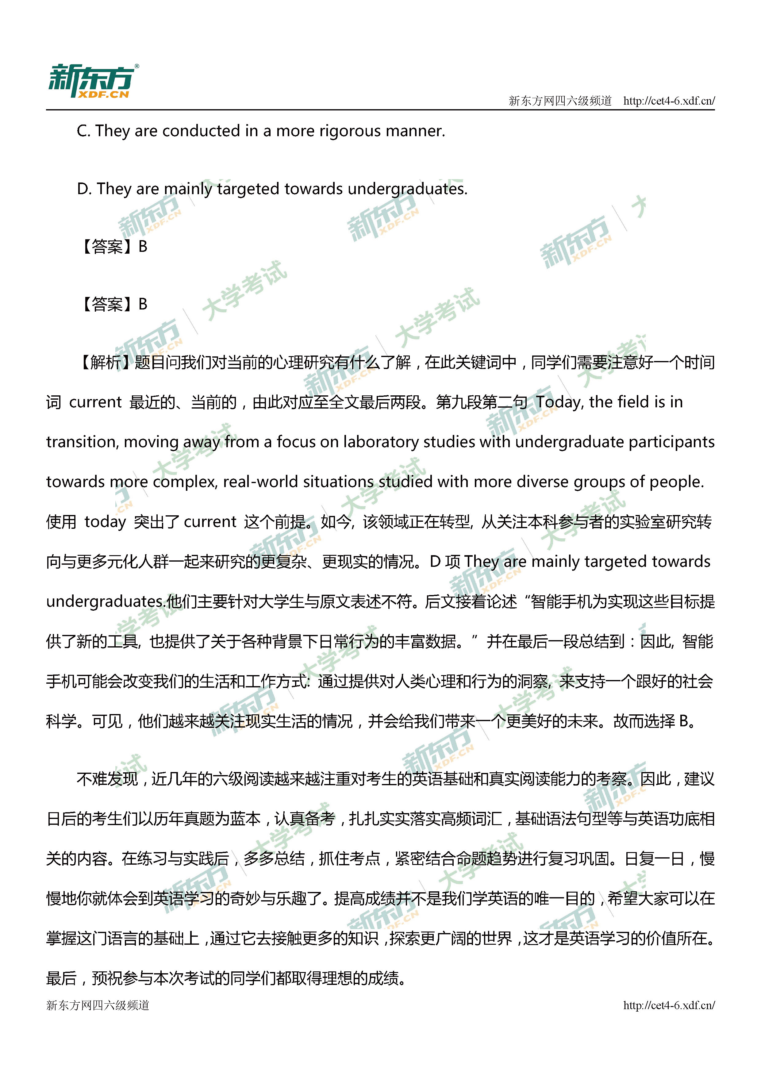 | 阅读 | 2018年12月六级阅读真题答案解析 |
