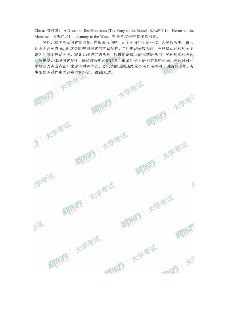以下内容是六级翻译译文与解析供各位考生参考!新东方网四六级频道第一时间更新公布英语四六级真题答案。同时广大考生还可随时@新东方网四六级微博及新东方网四六级微信xdfcet46,与线上老师以及考生随时互动答疑,敬请广大考生密切关注2020年7月英语四六级真题解析专题。