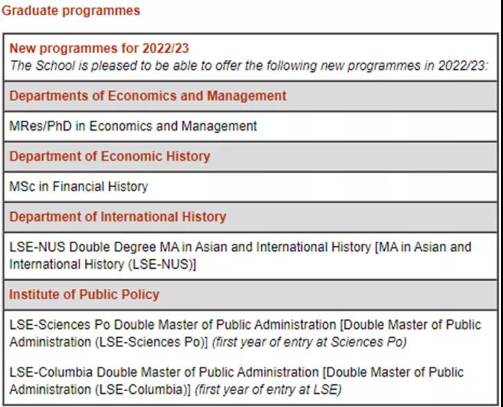 另外今年LSE开设了5个新专业,大家可以根据自己的背景去情况去官网详细了解一下,一般来说新开设的专业第一年的录取率会相对较高。