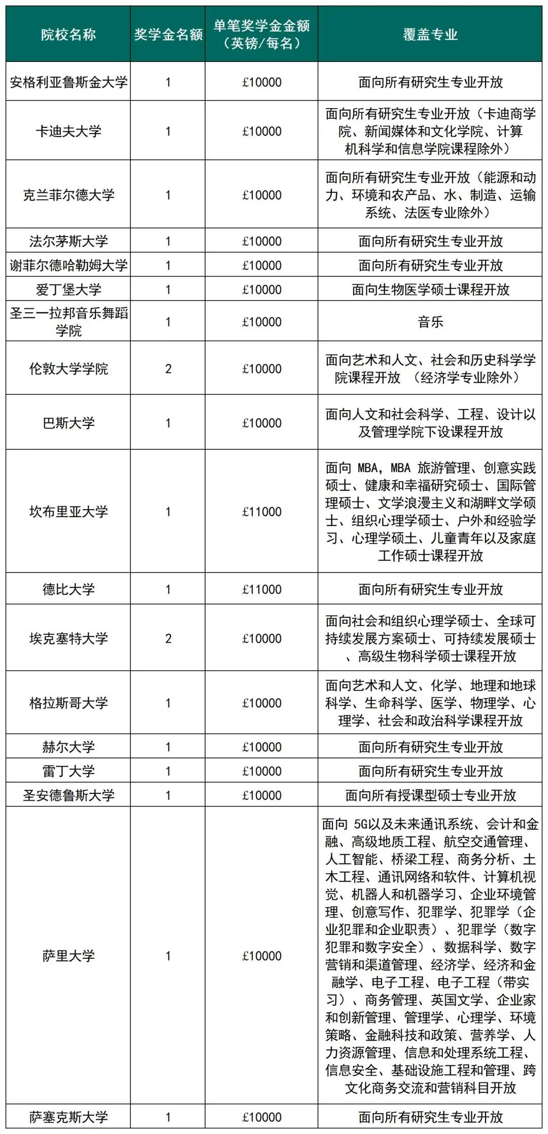 2022-23学年有以下高校为中国学生提供20个非凡英国奖学金名额: