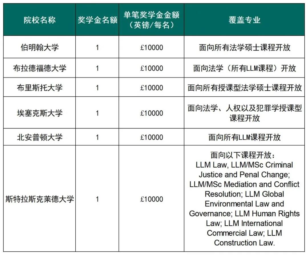 "2022非凡英国奖学金计划"法律专业专项奖学金参与院校: