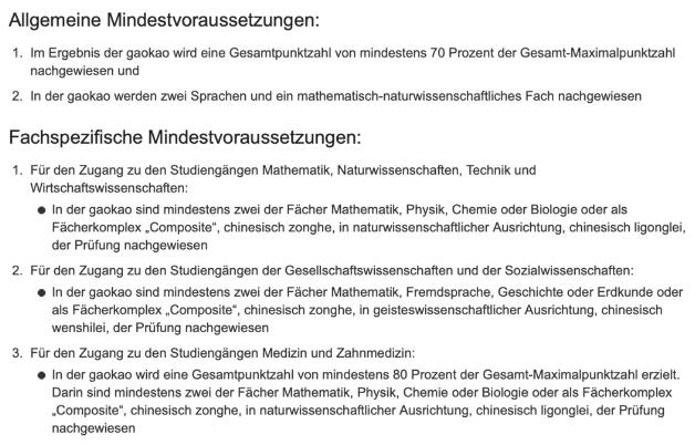 2019年8月,德国教育部颁布了新的高考程序,凡满足以下条件的中国高中毕业生,具备德国大学本科直接入学资格。