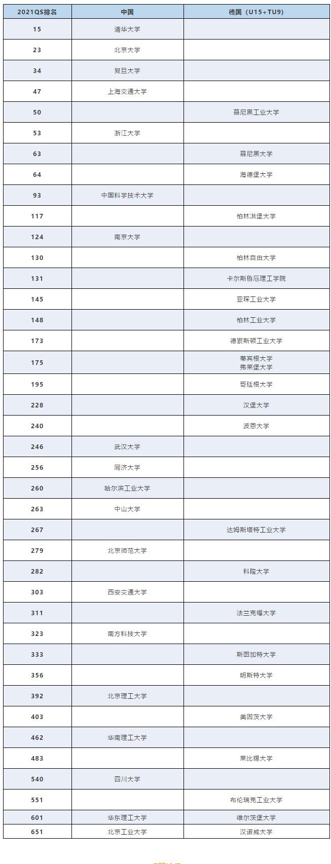 为了让大家对这些大学有一个更清晰更直观的认知,我们总结了2021年QS全球大学排名中中国与德国这24所大学的对比情况,供大家参考: