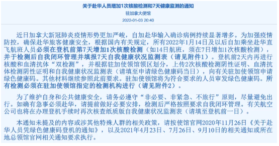 中国驻加拿大大使馆在 1 月 3 日更新了回国的要求,从要求来看,回国之路再加成本,小编将现阶段回国的检测和相关要求整理如下,希望可以帮到近期计划回国的人群。
