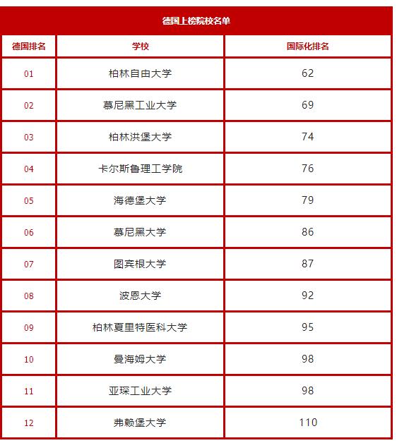 让我们来看看德国上榜的12所高校排名如何吧: