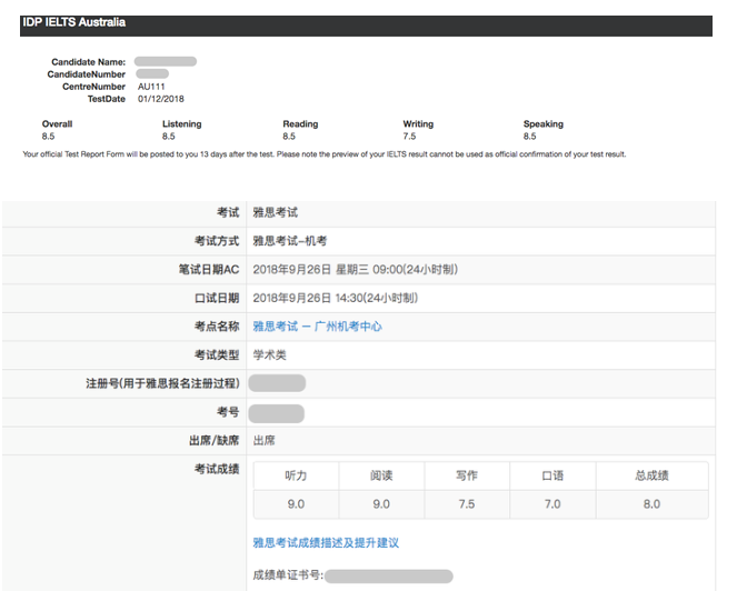 201812 澳大利亚黄金海岸纸质考试,听力8.5, 阅读8.5 写作7.5, 口语8.5 , 总分8. 5