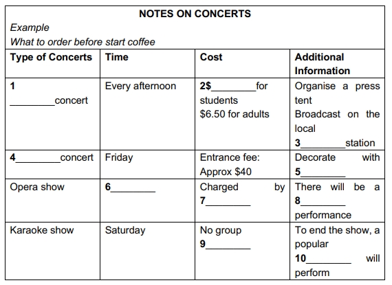 You will hear two students, Jack and Amy discussing the details of the concerts that they are planning to hold.
