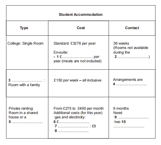 You will hear a student from overseas phoning a student accommodation office of a college in