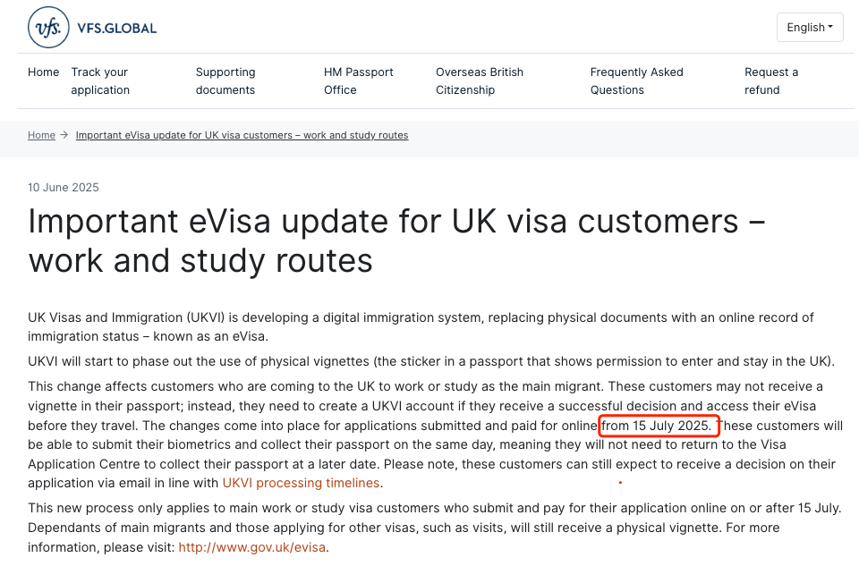 2025年7月15日起,英国签证迎来划时代变革!学生签证(Student Visa)和工作签证(Skilled Worker Visa)的主申请人将不再获得护照贴签(vignette sticker),全面启用电子签证(eVisa)系统。