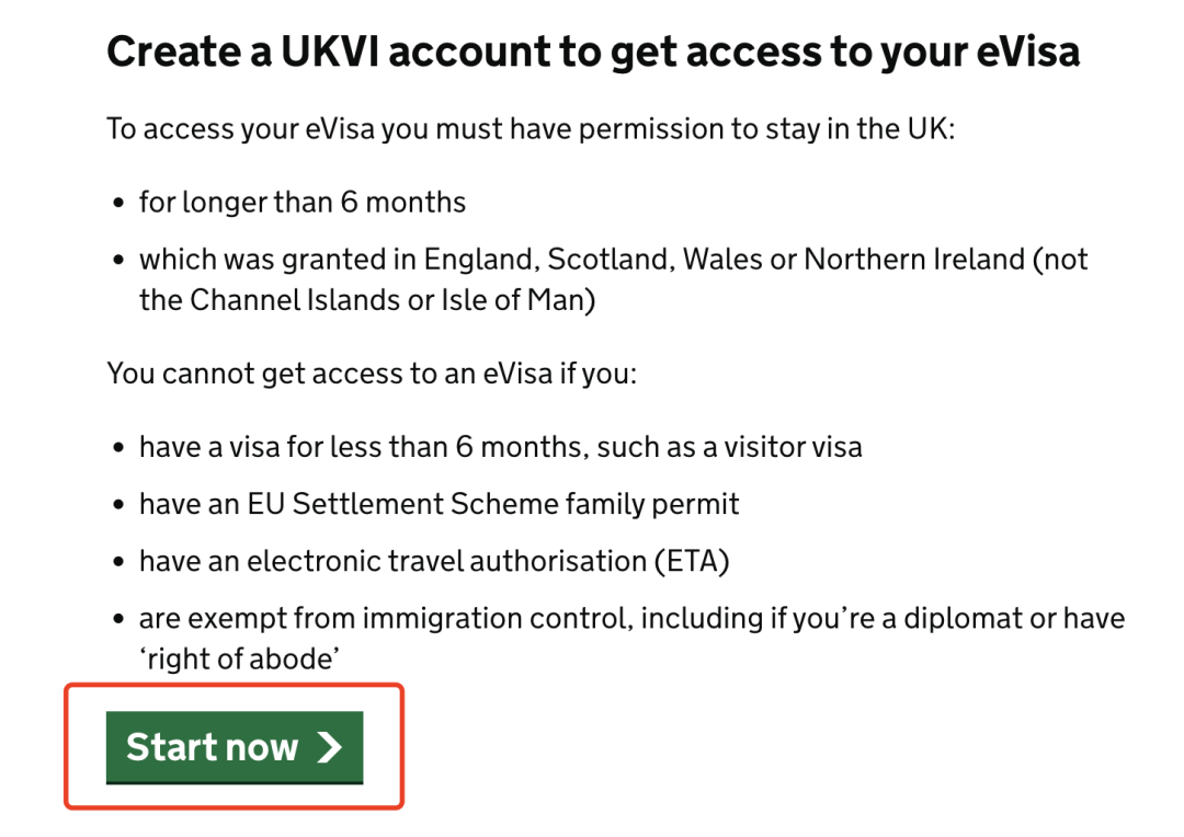 登录 https://www.gov.uk/get-access-evisa,点击“Start now”。