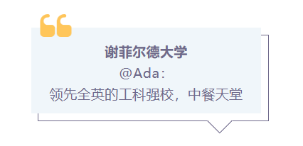 谢大的校园环境是很不错的,特别是治安,谢大所在的谢菲尔德市不大,而且谢大的位置比较偏,因此人称“谢村”,拥有全英最低的犯罪率,十分安全。此外,整个谢菲尔德就是一个超大的中国城,中餐厅和中超都很多!!随时随地都能满足我的中国胃!