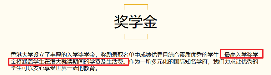 最高可涵盖学生在港大就读期间全部的学费,以入学综合成绩判定,奖励录取名单中成绩特别突出且综合素质优秀的内地学生。
