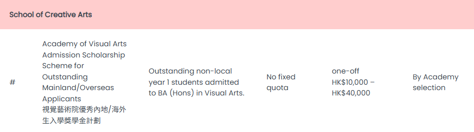 学院/专业可能会向优秀的非本地申请者提供入学奖学金,如传理学院、视觉艺术、理学双学士、文理及科技学士自订主修专业等。