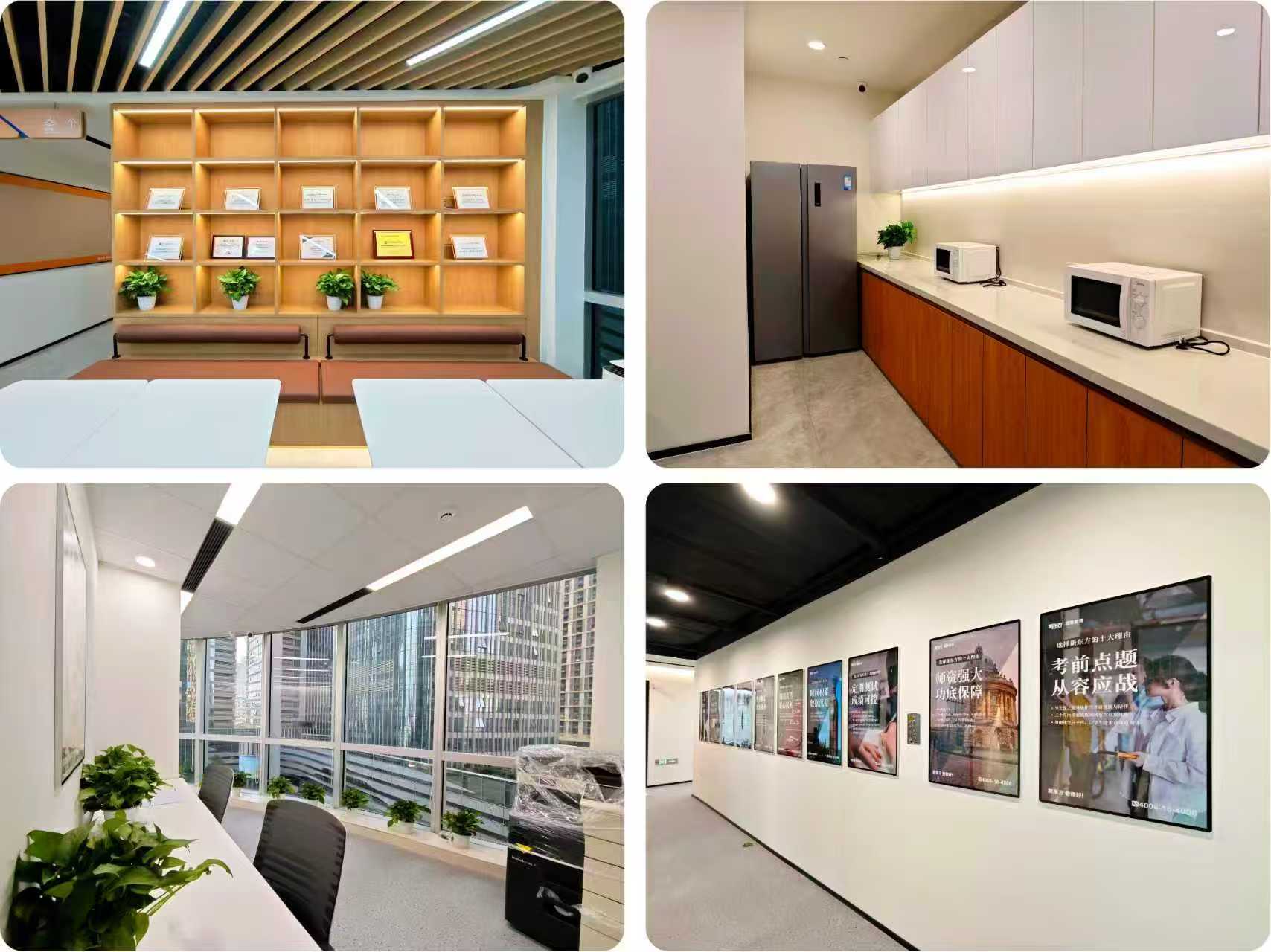 今天介绍的是5楼新校区,近1000平大平层,提供除办公区外的22间教室和公共空间,18间教室,3间VIP教室,1间模考机房,容纳各种班型。