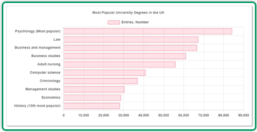 此前英国Think Student网站基于英国高等教育统计局(HESA)的数据,发布英国大学最受欢迎的十大专业。