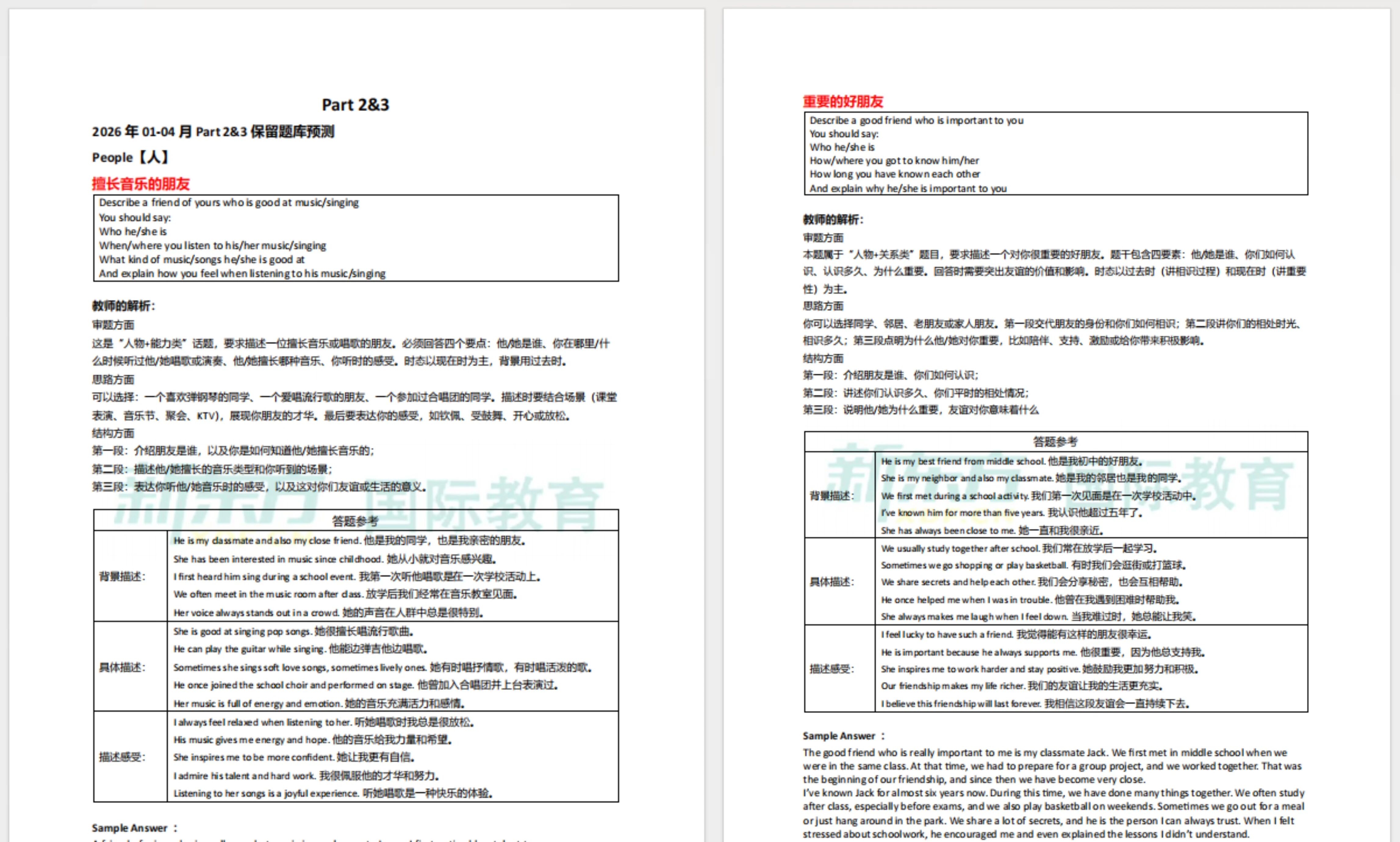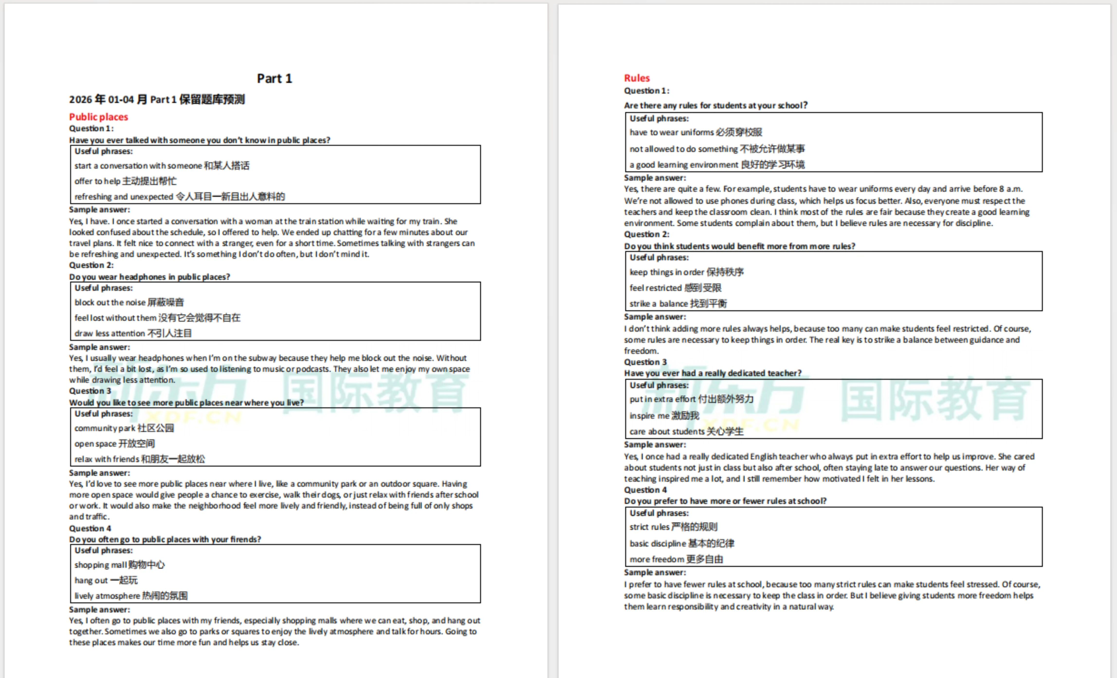 准备明年考雅思的宝子有福啦!不仅考试费降价了~2026年1-4月的雅思口语题库,也已经为大家整理出来了!