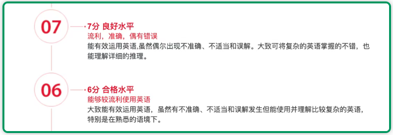 (3)六级达到600~650分左右,则雅思基本能达到7-7.5分。
