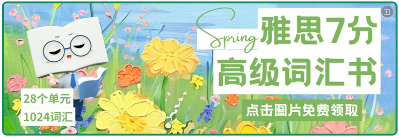 为了帮助粉丝朋友们度过雅思备考难关,小微准备了雅思7分高级词汇电子书送给大家,共有28个单元,1024个单词,每个单词包括读音、同义词、反义词、例句。希望能帮到大家,点击下图即可领取~