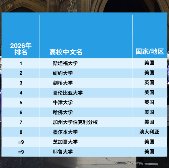就在1月21日,《泰晤士高等教育》(Times Higher Education,简称THE)揭晓了2026年世界大学学科排名!