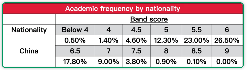 根据今年雅思全球数据报告,中国大陆地区的考生中,参加A类(学术类)考生并拿到8.5-9分的同学比例依旧为:0%。(而马来西亚考到8.5分人数占比为6%!)