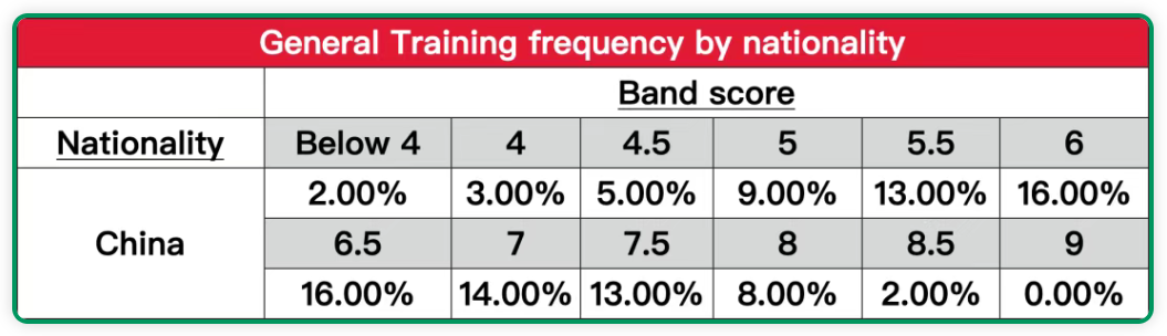 再来看看G类(移民类)雅思考生的表现:雅思总分考到8.5的占比2%,而雅思总分拿到9分的还是0%。