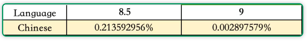 可能每500-1000名的考鸭中才会出现一个考8.5的同学,9分考生的数量更是屈指可数,最终导致这个占比过低,可能到了小数点后很多位,于是由于无法进位而被抹掉