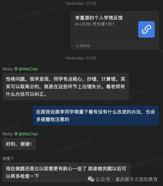 课后当同学遇到难题,我也会第一时间帮忙答疑解惑,陪伴同学突破难点