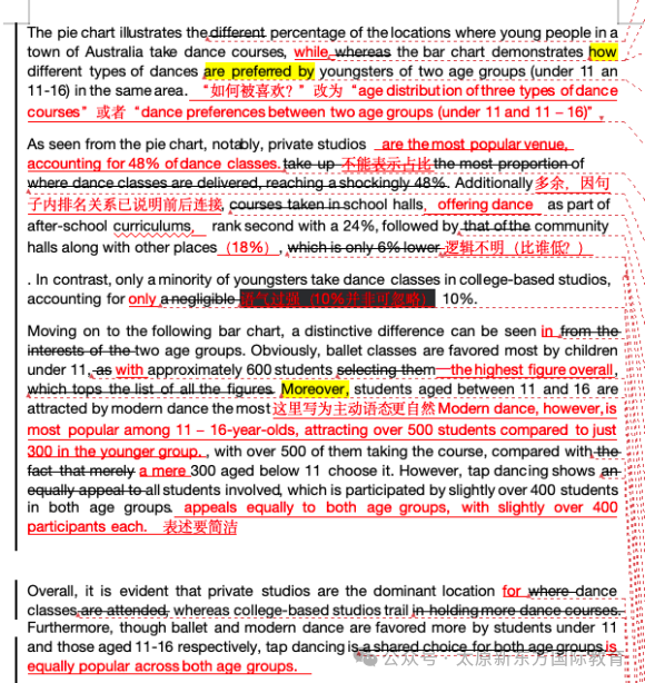 孟老师的批改从不简单标注“语法错误”,而是明确指出:“这个例子无法支撑你的论点”“这个表达太口语化,不适合学术讨论”。