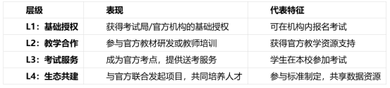通过对市场的观察,可以将机构的官方资源整合能力划分为四个层级: