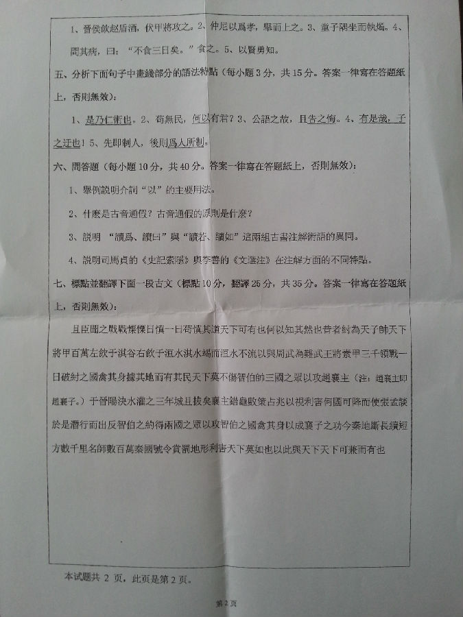 2015年河北大学818古代汉语考研试题