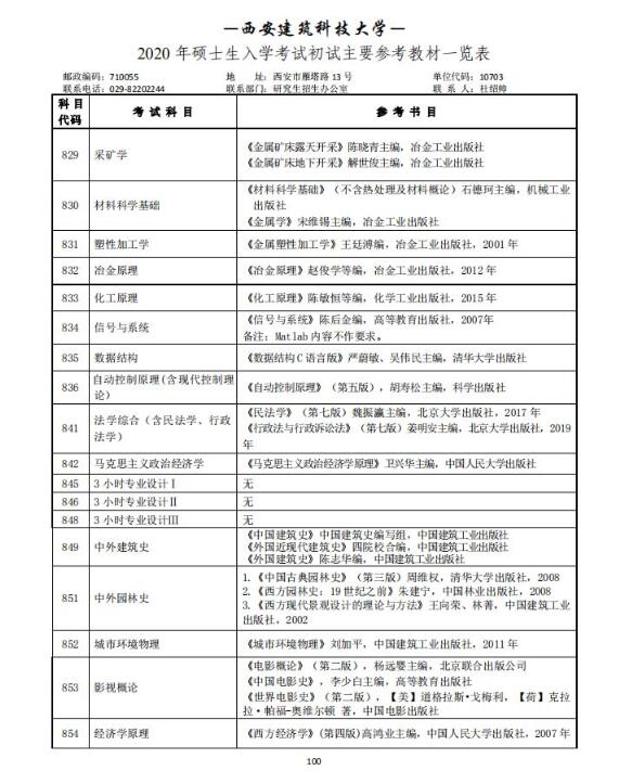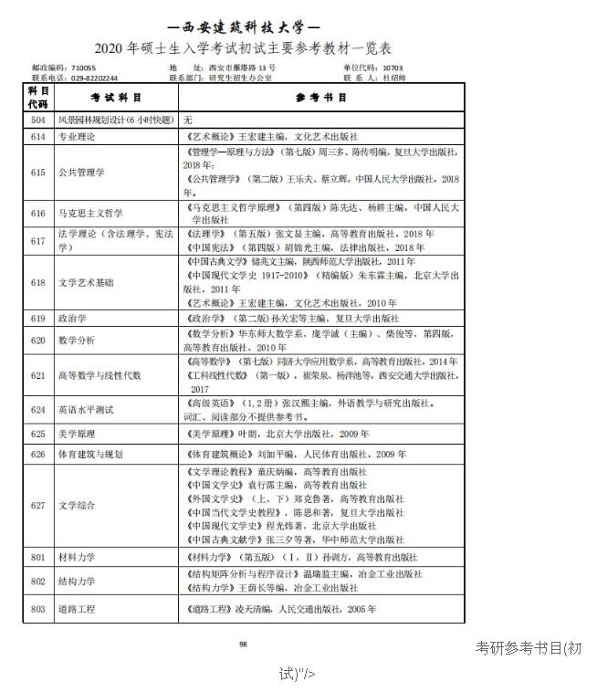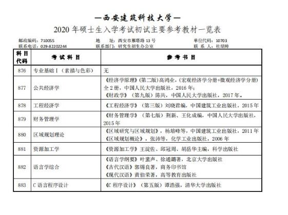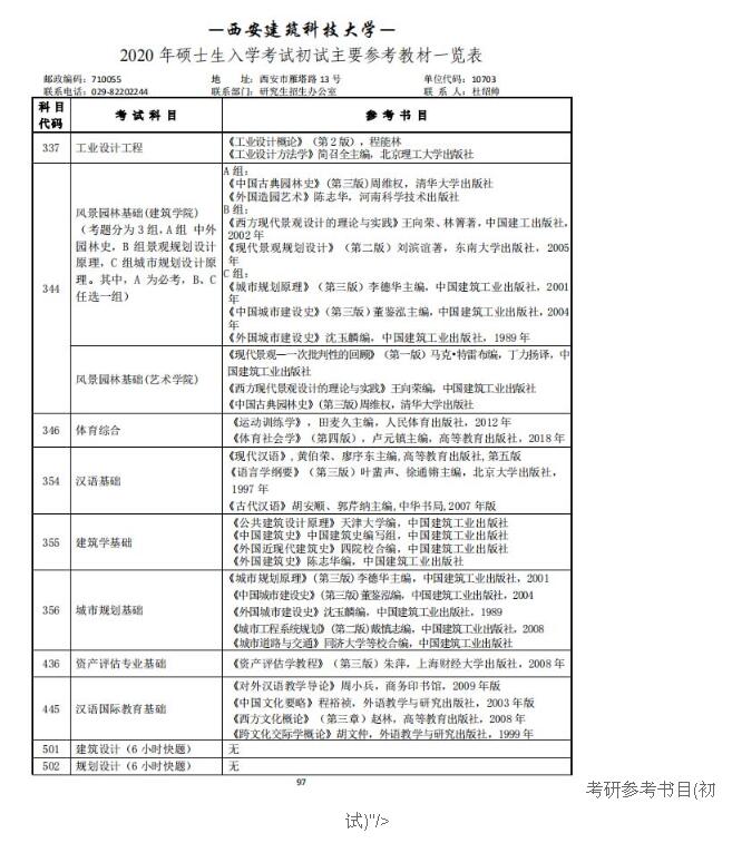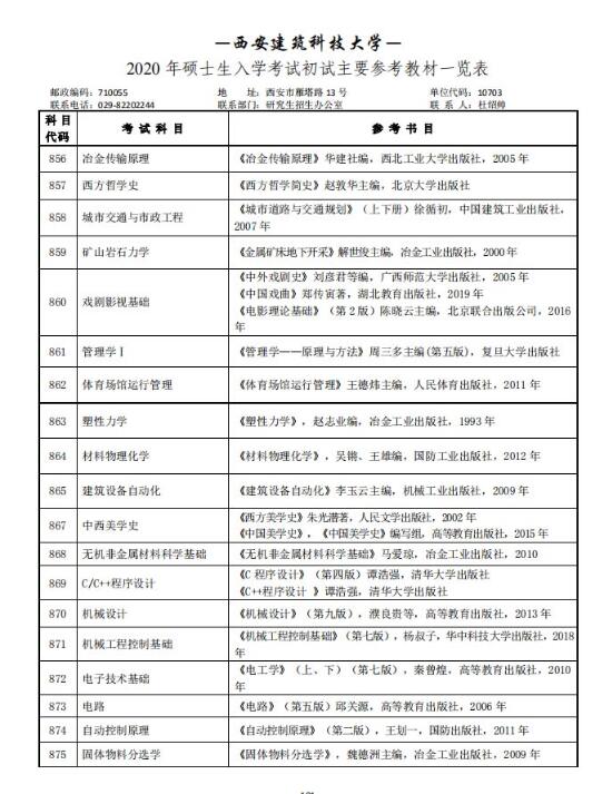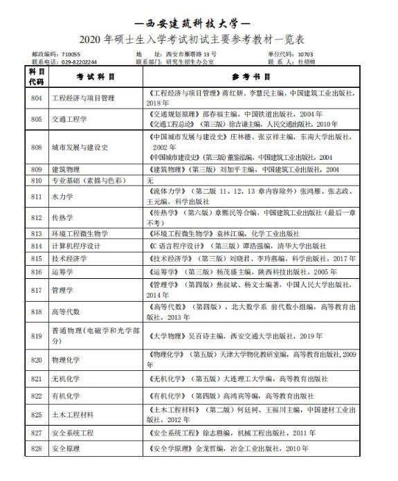 西安建筑科技大学2020考研参考书目(初试)