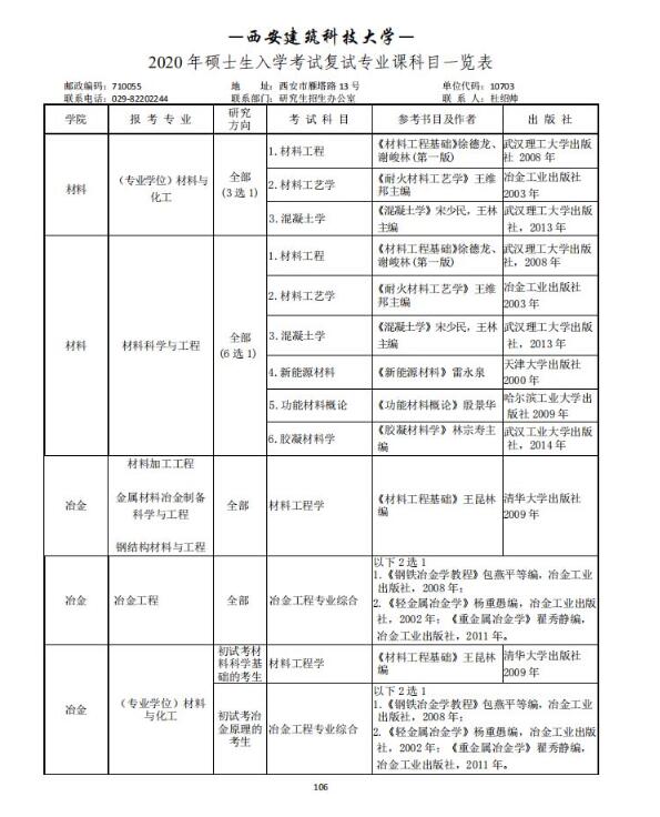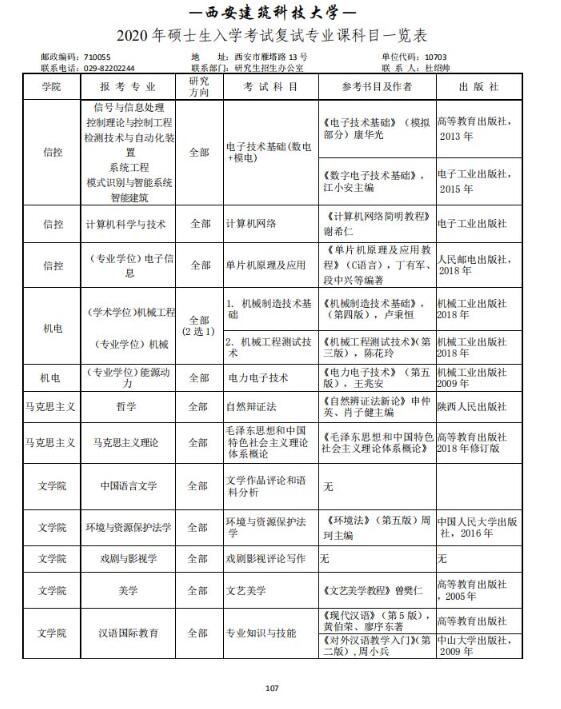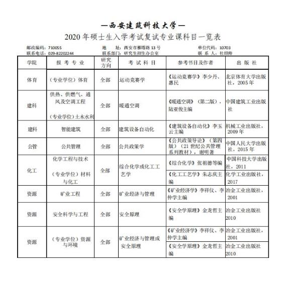 西安建筑科技大学2020考研参考书目(复试)