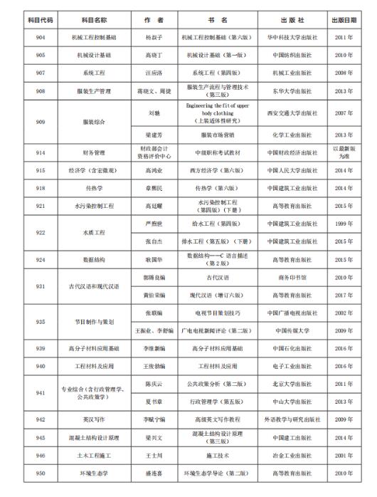 西安工程大学2020考研参考书目
