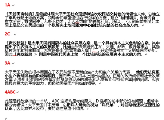 1.《天朝田亩制度》旨在解决的中心问题是:( )(单选)