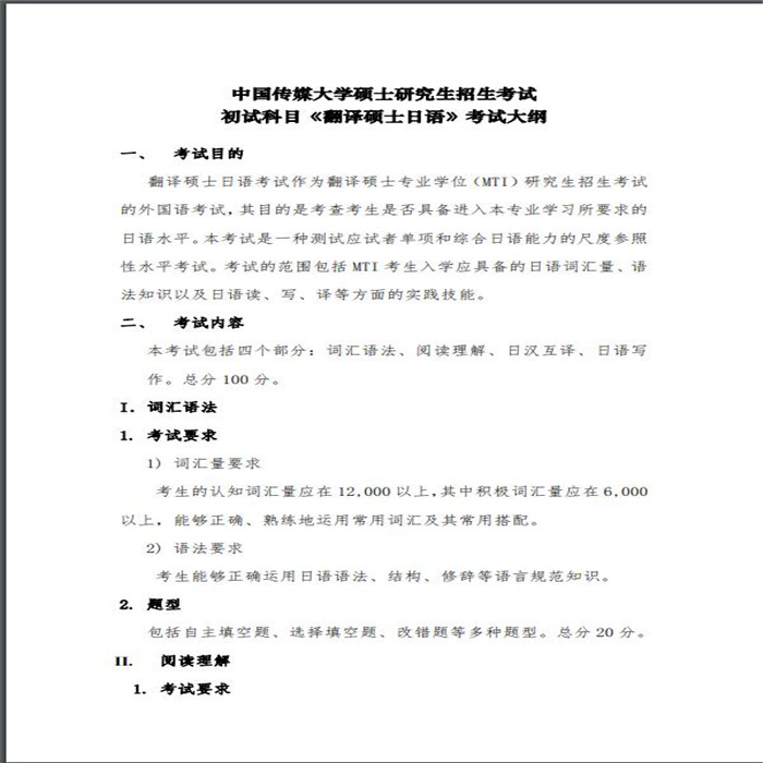 2021考研同学注意啦,现在已经进入紧张的复习阶段,小编整理的“ 中国传媒大学2021硕士研究生招生初试自命题考试大纲- 213翻译硕士日语”希望对同学们有所帮助!学起来吧~更多资讯请关注新东方考研频道