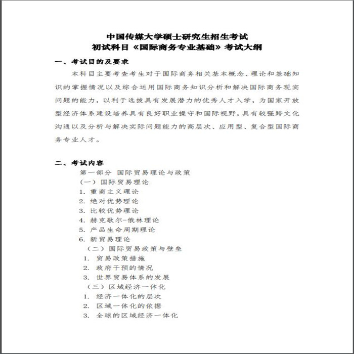 2021考研同学注意啦,现在已经进入紧张的复习阶段,小编整理的“ 中国传媒大学2021硕士研究生招生初试自命题考试大纲-434国际商务专业基础 ”希望对同学们有所帮助!学起来吧~更多资讯请关注新东方考研频道