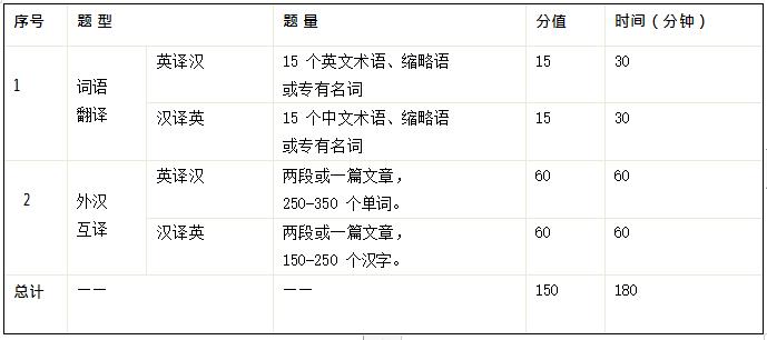 的英汉互译专业技能和潜质,总分 150 分;《汉语写作与百科知识》重点考察考生的现代汉