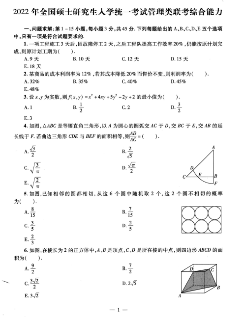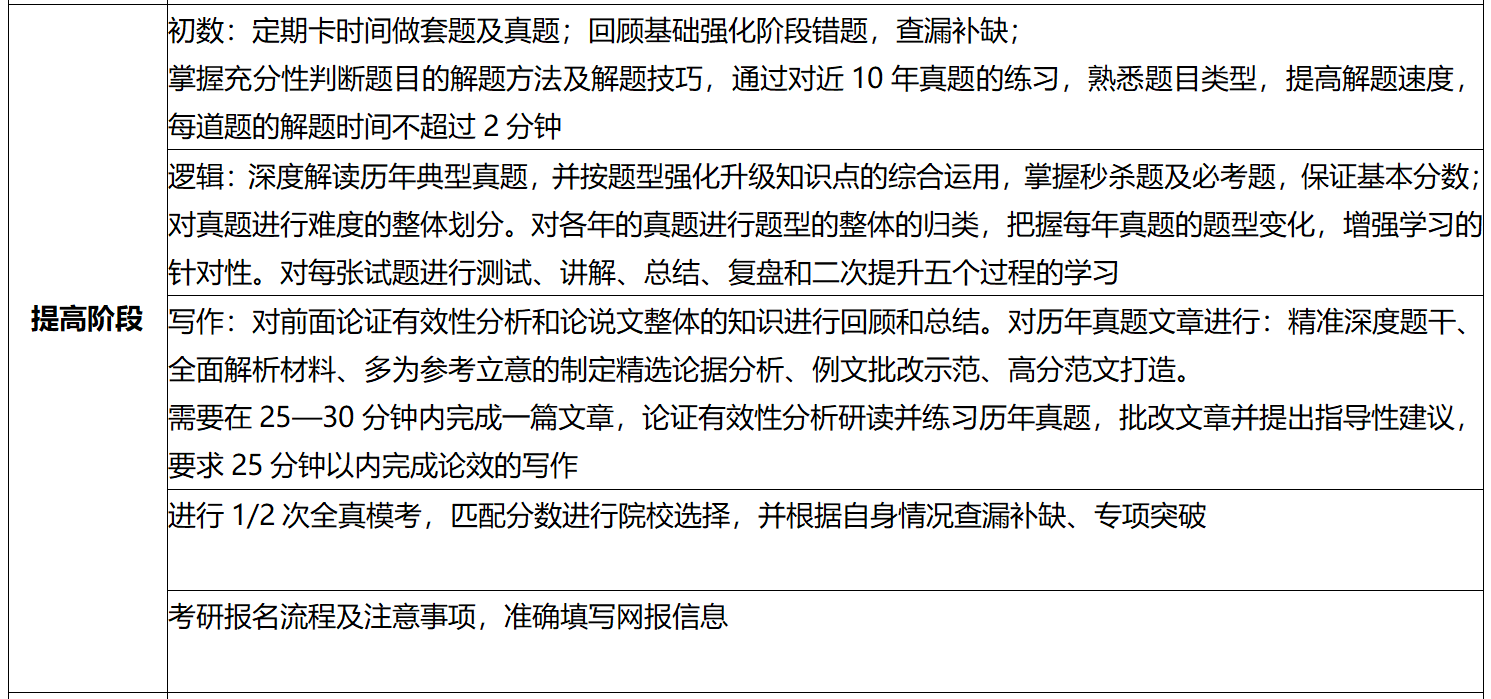 1.初等数学:在提高阶段考生需要定期卡时间做套题及真题;回顾基础强化阶段错题,查漏补缺;掌握充分性判断题目的解题方法及解题技巧,通过对近10年真题的练习,熟悉题目类型,提高解题速度,每道题的解题时间不超过2分钟。