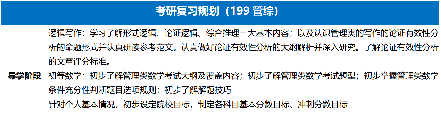1.逻辑写作:在导学阶段学习了解形式逻辑、论证逻辑、综合推理三大基本内容;以及认识管理类的写作的论证有效性分析的命题形式并认真研读参考范文。认真做好论证有效性分析的大纲解析并深入研究。同时提前了解论证有效性分析的文章评分标准。