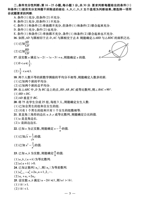 | 条件充分性判断 | 30分 | 10道题,每道3分 | ||