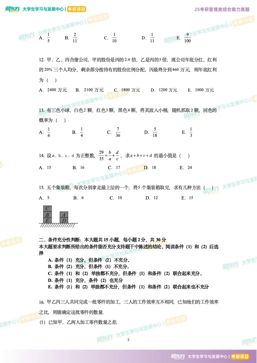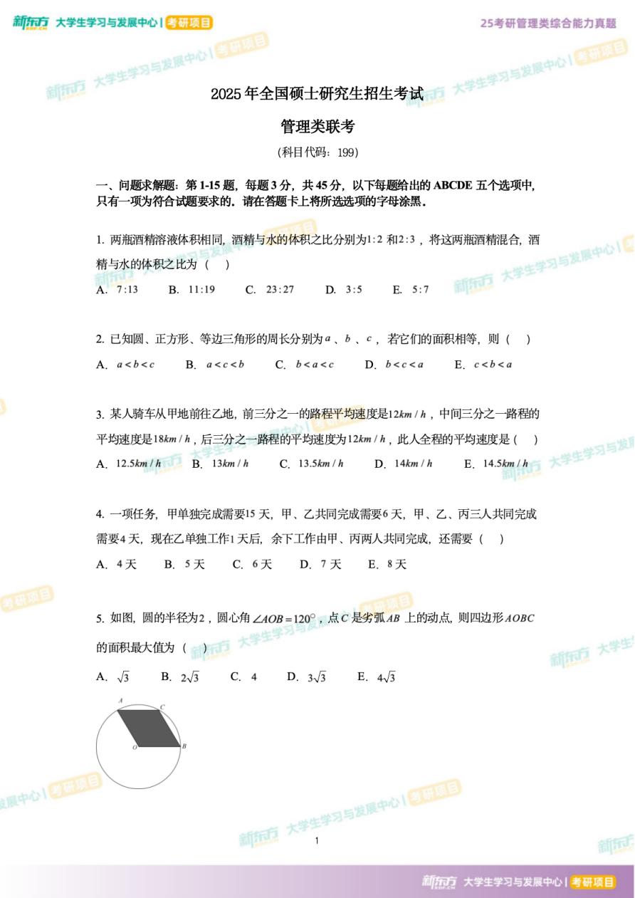 25考研已经结束,对于每位备战考研的朋友而言,历年真题无疑是一份极其宝贵的学习资源。反复练习真题,有助于大家发现知识漏洞、加深对各类题型的理解、并养成良好的解题习惯等。为此,呼和浩特新东方特此向同学们呈上2025年考研199管综的真题及其解析,旨在助力大家在考研备考之路上进一步,通过持续的练习与反思,精准把握核心考点,突破学习难关。