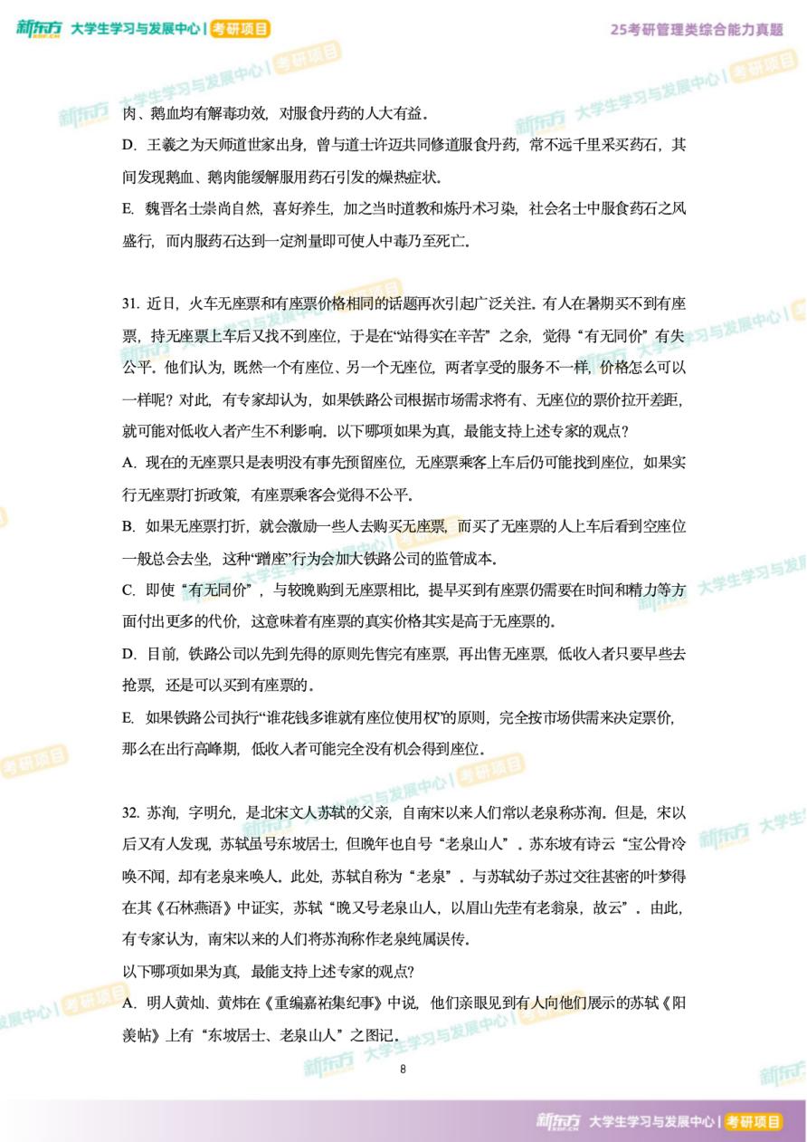 以上是呼和浩特新东方为同学们搜集的2025年考研199管综真题,大家可以点击右侧客服老师对话框获取真题、答案解析以及答题卡的PDF版本。如果大家想要进一步了解考研考情分析、考题预测以及考前集训等相关方面,也可以随时联系呼和浩特新东方在线老师进行咨询,更多考研真题欢迎点击查看!