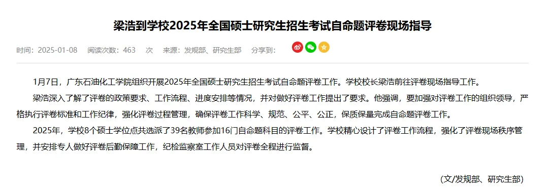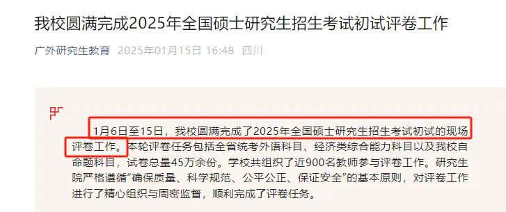 阅卷工作来自一些高校官网、新闻网消息,2025研考阅卷正在进行中...