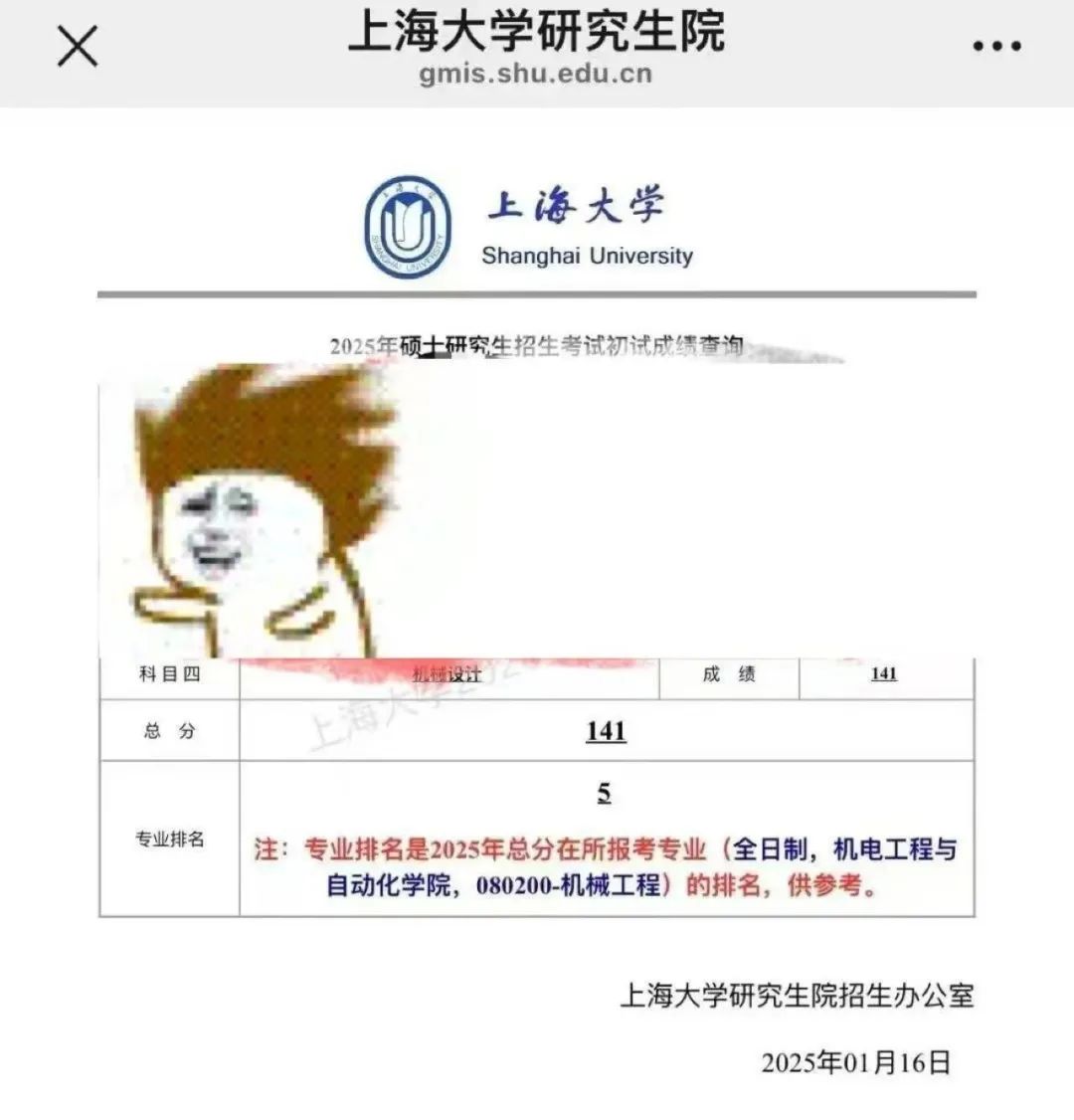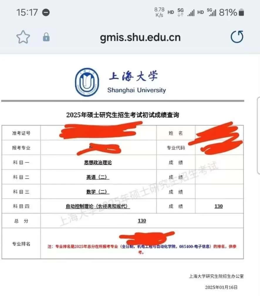 在小某书上进行了查证,发现确实有部分上海大学的同学,下午查到了25考研初试成绩,不过只有专业课的分数和专业排名,但只是少数同学查到了,更多同学表示根本进不去系统!