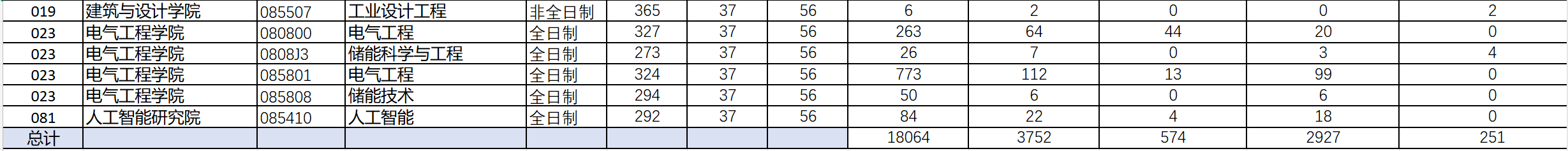 工程类(电子信息、机械、材料与化工、资源与环境、能源动力、土木水利、生物与医药、交通运输):251分